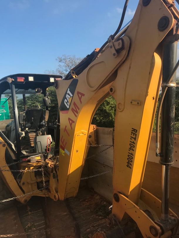 Imediatamente a equipe se deslocou até a rodovia com os dados passados pelo Copom onde avistou a referida retroescavadeira sendo transportada por um caminhão Scania. Pela altura do KM 64 um pouco já pouco à frente do bairro arraial de São Bento. Foi dado ordem de parada e conseguiram deter dois indivíduos ocupante dos veículos.