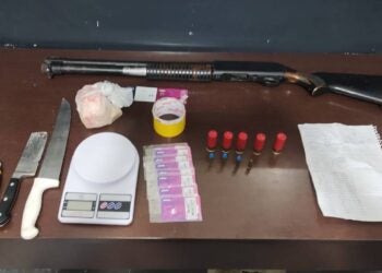 De acordo com a Polícia Militar, soldados faziam patrulhamento pelo bairro quando abordaram os dois menores de 18 anos, que estavam em cima de uma moto na Rua Oito. Um dos adolescentes desceu do veículo e entrou na casa onde estavam as drogas. Os policiais revistaram a residência e encontraram nos fundos da propriedade os outros dois homens embalando os entorpecentes.
