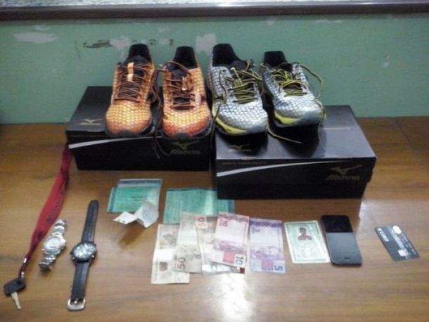 De imediato, a vítima acionou a PM, que passou a realizar rondas pela região. No bairro Vila Real, os policiais viram dois rapazes com as mesmas características dentro de um Chevette. Durante a abordagem, a PM encontrou os calçados, além de dinheiro, cartões, documentos, celular e relógio, tudo de propriedade da vítima.