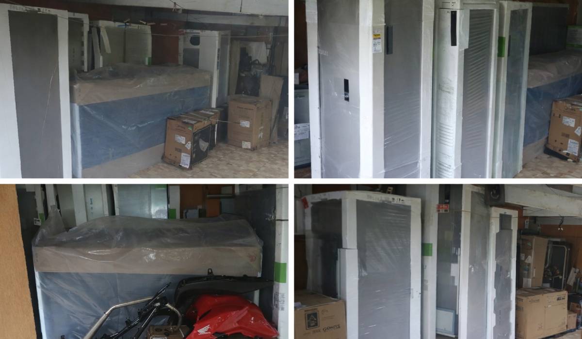 No imóvel, os policiais encontraram dinheiro exposto sobre uma mesa e apreenderam uma grande quantidade de itens, incluindo eletrodomésticos, utensílios domésticos, móveis, além de dois bloqueadores de sinal. Também foram localizadas peças de motocicleta com registro de furto e com sinais identificadores adulterados, reforçando a suspeita de atividade criminosa estruturada.