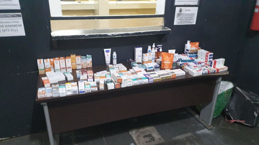 Segundo a gerente, os itens levados somam cerca de R$ 20 mil entre cosméticos e medicamentos.