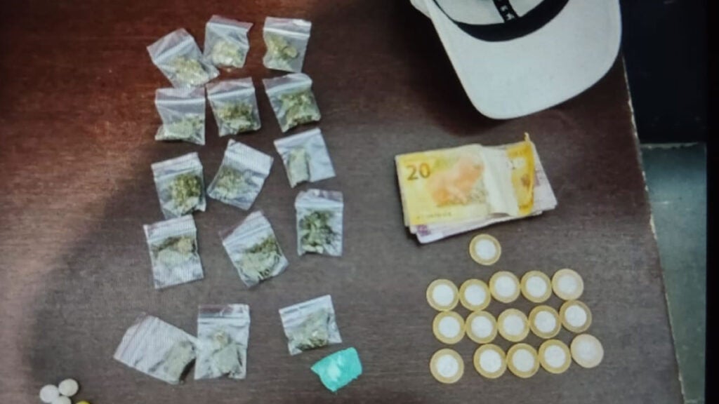 Na revista, a equipe da GCM encontrou com o suspeito uma quantidade de substância análoga à maconha e outra substância semelhante ao crack, além de dinheiro fracionado, caracterizando possível tráfico de drogas. O suspeito foi então conduzido ao plantão policial de Hortolândia, onde, em depoimento, confessou a posse dos materiais apreendidos. Após a audiência com a autoridade policial, foi decidido que o indivíduo permaneceria detido.