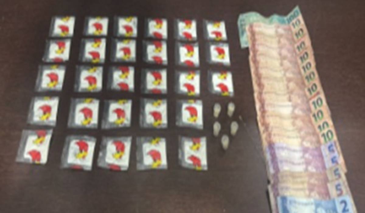 Após nova indagação, o suspeito acabou confessando que escondia entorpecentes nas proximidades e admitiu envolvimento com o tráfico de drogas. A equipe foi até o local indicado e encontrou 28 papelotes de cocaína e cinco microtubos contendo pedras de crack.