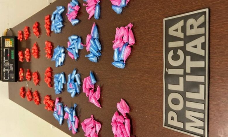 No momento da aproximação dos policiais, o suspeito abandonou uma bolsa e fugiu do local. Durante buscas na área, os agentes encontraram um barraco onde abordaram outro indivíduo, que portava uma sacola contendo: