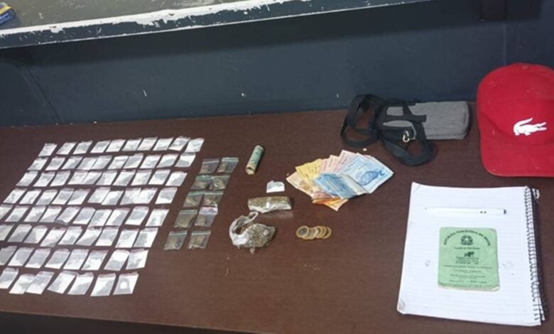 Ao perceber a aproximação dos policiais, o homem demonstrou surpresa e foi imediatamente abordado. Durante a abordagem, ele confessou espontaneamente que vendia drogas na região. Na busca pessoal, os agentes encontraram porções de cocaína, maconha e a quantia de R$ 194 em dinheiro.