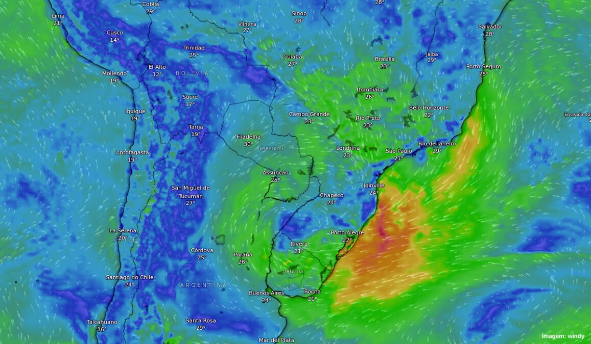 Com o avanço do ciclone, as temperaturas caem no Sul e Sudeste: