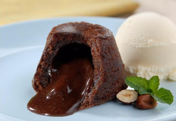– Para ver se o petit gateau está assado, veja se o bolinho criou uma casquinha na superfície e se apertando levemente o centro ainda está mole. Feito dessa forma, o petit gateau fica cremoso no centro.
