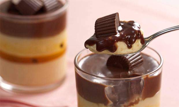 7. Complete as taças com o chocolate.