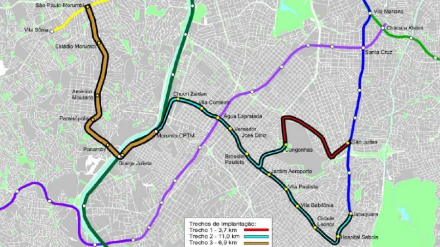 O monotrilho entregue é apenas uma parte do projeto original. Quando foi anunciado, em 2010, o plano previa uma linha com até 18 estações, conectando regiões como Jabaquara, Morumbi e até Paraisópolis.