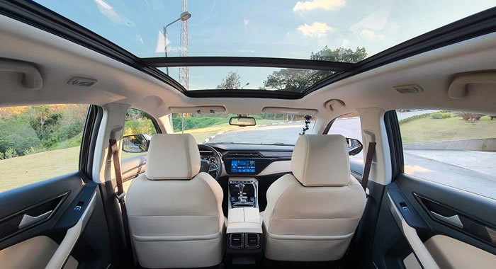Conta com console central elevado e teto solar panorâmico elétrico de série. O banco traseiro, além de um descansa-braço rebatível com porta-copo, conta com saídas do ar-condicionado automático digital e entrada USB.