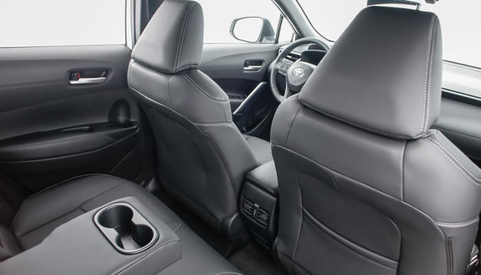 O volante de três raios com controles de áudio e computador de bordo tem acabamento em couro. A versão XRE ainda conta com aletas para trocas de marcha (paddle shift). Os ocupantes do Corolla Cross desfrutam de muitos porta-copos e objetos nas portas, no console central e no apoio de braços no banco traseiro, oferecendo conforto e comodidade.
