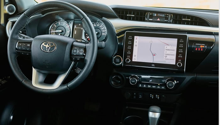 No entanto, a maior estrela da Toyota nesse quesito é o pacote de segurança ativa Toyota Safety Sense (TSS), disponível para a Hilux SRX. Este sistema conta com um radar de ondas milimétricas combinado com uma câmera monocular para detectar uma variedade de perigos e alertar o motorista.