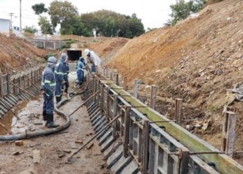 Implantação de taludes às margens da canalização em concreto avança O trecho de rua que integra o viário em implantação ...
