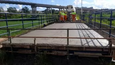 Calçada para a circulação de pedestres também é implantada no trecho próximo ao Parque Remanso das Águas A passarela metálica ...