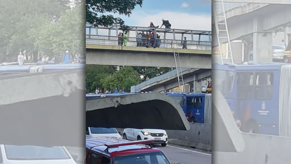 O Corpo de Bombeiros resgatou uma mulher de cima da passarela que passa sobre a rodovia SP-101, na altura do Jardim Sumarezinho.