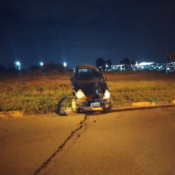 Um carro colidiu contra um poste na estrada da Granja na noite deste sábado(9). Com o impacto o carro foi parar do outro lado da rua.