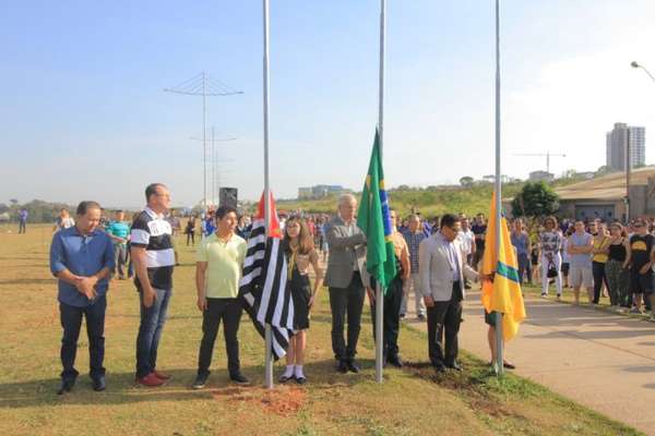 O prefeito Angelo Perugini saudou os presentes, acompanhou a cerimônia de hasteamento de bandeiras, a entoação de hinos e todo o desfile cívico que, além de promover a paz no Brasil e no município, fez alusão ao Sete de Setembro, Dia da Independência do País, ocorrido no sábado (07/09).