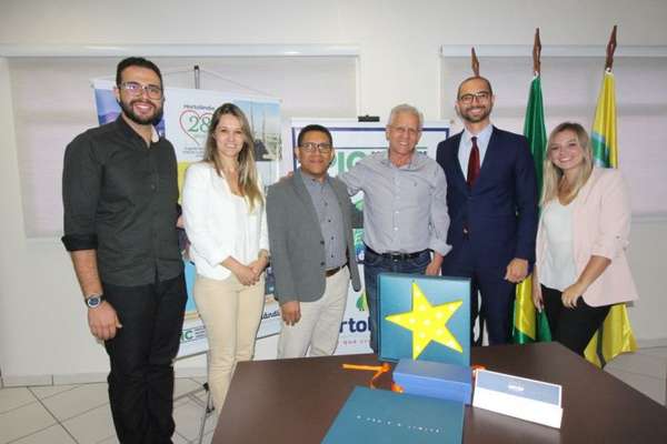 Em razão dos 28 anos de emancipação de Hortolândia, o prefeito Angelo Perugini recebeu, na manhã desta quinta-feira (16/05), uma homenagem do Unasp (Centro Universitário Adventista de São Paulo), instituição de ensino superior ligada à Rede Adventista de Educação. O grupo está presente no município há 70 anos, quando a área hoje emancipada ainda pertencia à vizinha cidade de Sumaré. A comitiva foi formada por seis integrantes, dentre eles o Professor Doutor Afonso L. Cardoso, vice-reitor executivo do Centro Universitário e diretor executivo do campus Hortolândia, e o advogado do campus local, Fernando Cerqueira.