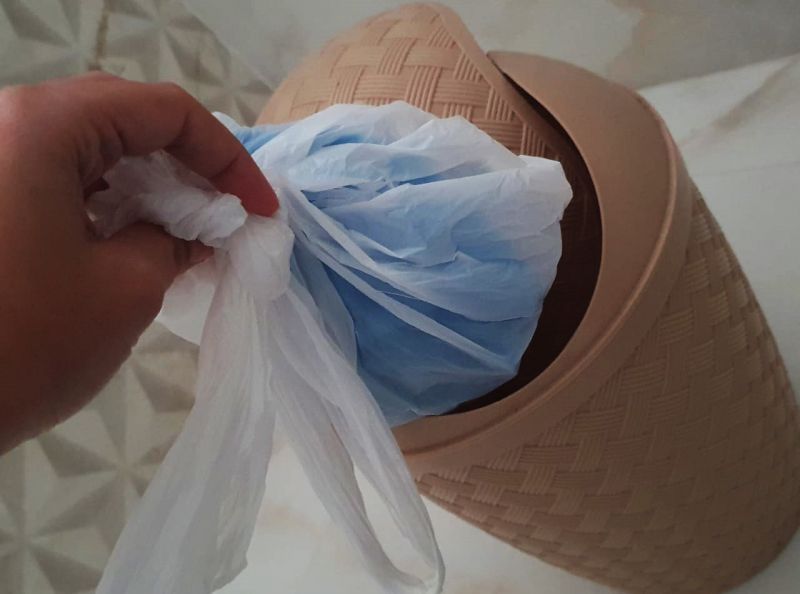 Caso seja utilizada máscara descartável, após o uso, ela deve ser descartada dentro de um saco plástico bem amarrado, depois colocado junto com o lixo do banheiro. O saco plástico diminui o risco de contaminação e cria uma barreira de proteção, quando coletado pelos catadores. O material, em hipótese alguma, deve ser separado para coleta seletiva, destinada a recicláveis.