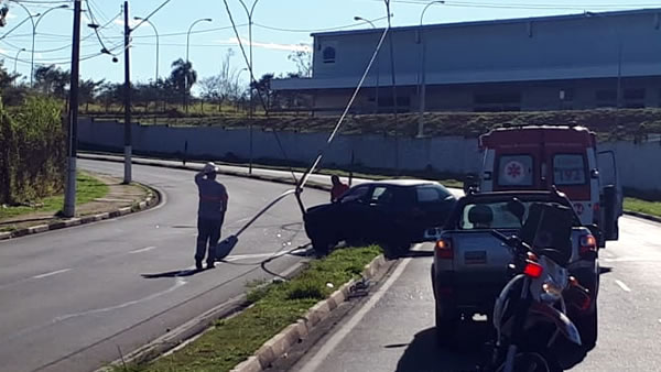 Um motorista colidiu contra um poste após perder o controle do veículo na manhã desta terça-feira(06), no bairro Jardim São Camilo, em Hortolândia(SP), próximo a antiga Mabe.