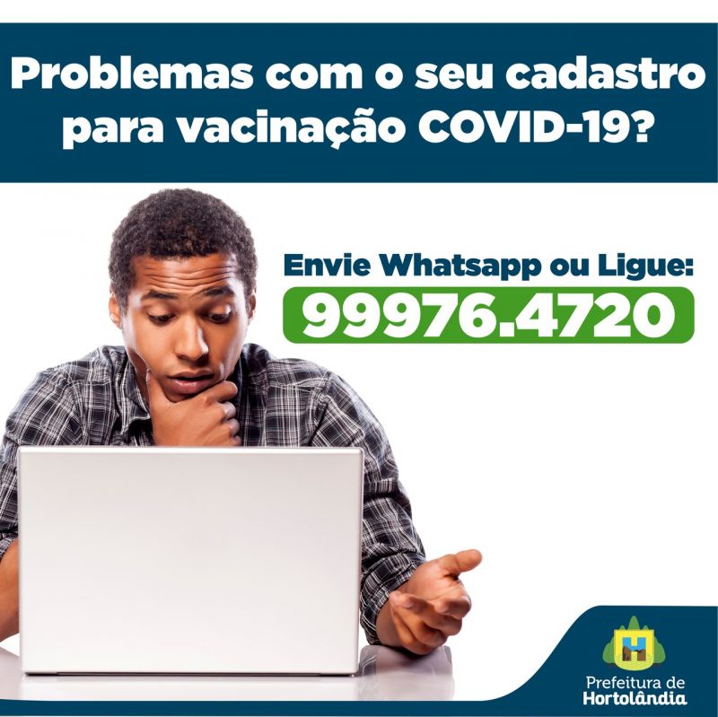 A Prefeitura de Hortolândia disponibiliza atendimento via WhatsApp pelo número (19) 99976-4720 para ajudar quem teve seu pré-cadastro negado para a vacinação contra a COVID-19. O serviço funciona de segunda a sexta-feira, das 8h às 17h.