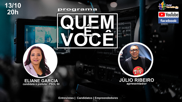 Não percam nesta terça-feira(13), no programa Quem é Você, onde o apresentador Júlio Ribeiro recebe a candidata à prefeita pelo PSOL, Eliane Garcia.