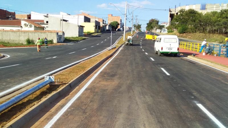 A Prefeitura de Hortolândia sinaliza o trecho viário da nova ponte entre o Jardim São Sebastião e o Jardim Interlagos. Com a demarcação de sinais no asfalto, a Administração Municipal garantirá um trânsito mais seguro e eficaz no local. A inauguração da estrutura está prevista para ocorrer ainda neste mês de junho. De acordo com a Secretaria de Obras, a ponte em construção terá 308 metros de extensão. A obra é necessária para garantir mais segurança a motoristas e pedestres, principalmente em dias de chuva, quando o córrego transborda e inunda a pista atual.