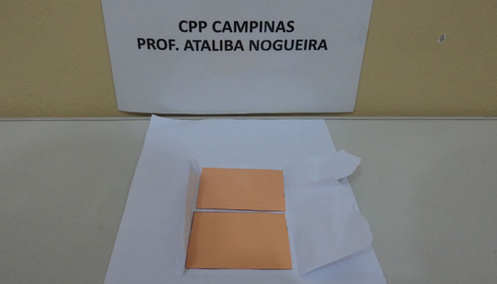 A Secretaria da Administração Penitenciária (SAP) informa que duas unidades de papel, contendo droga K4, foram encontradas por agentes penitenciários do Centro de Progressão Penitenciária (CPP) Profº Ataliba Nogueira, de Campinas, nesta terça-feira, 9, em meio a folhas de sulfite.