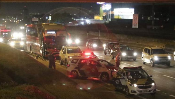 Um homem morreu após tentar assaltar um ônibus na Rodovia Anhanguera, em Campinas(SP). Dois policiais que estava no ônibus reagiram e impediram assalto.